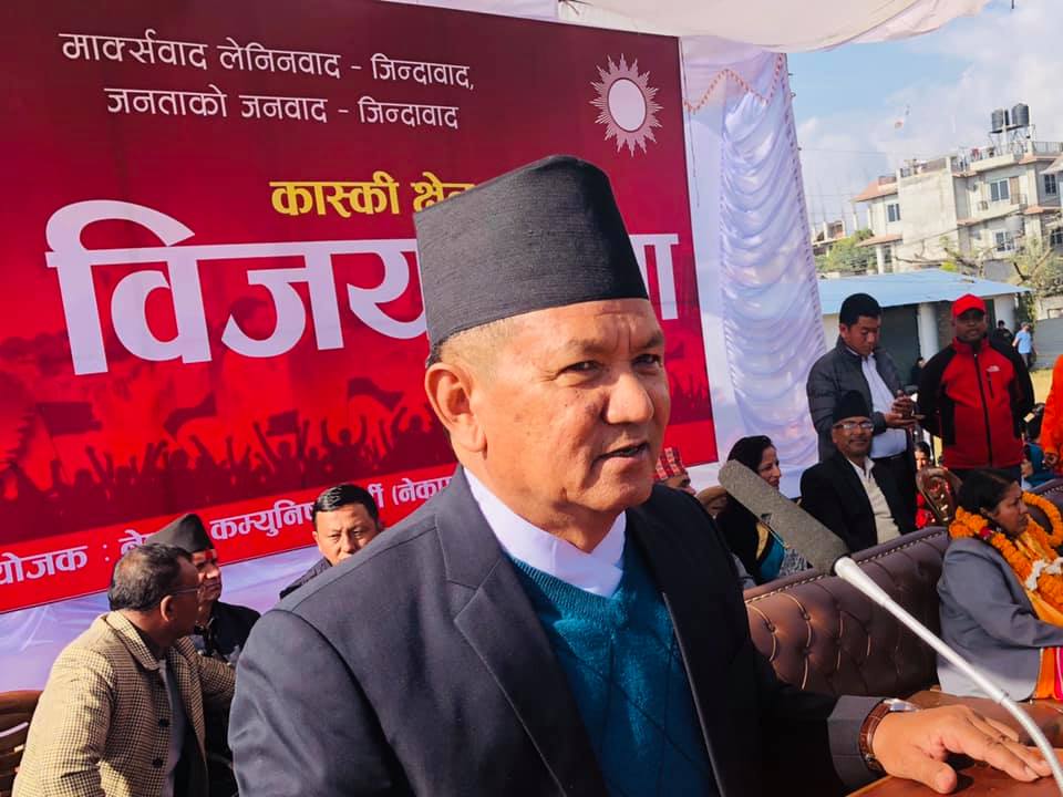 नेकपाका केन्द्रीय सदस्य एवं कास्कीका इञ्चार्ज राजकाजी गुरुङ “करण”ले नेकपाको वैचारिक स्पष्टता, प्रभावकारी कार्यकर्ता परिचालन र आक्रामक प्रचारका माध्यमबाट उपनिर्वाचनमा नेकपाले विजय हासिल गरेको बताउनुभयो । उपनिर्वाचनले नेकपाको पक्षमा जनमत कायमै छ भन्ने प्रमाणित गरेको जिकिर गर्दै नेता करणले विजयलाई उन्मादका रुपमा नलिएको प्रष्ट पार्नुभयो । देशलाई समृद्ध बनाउने अभियानमा सबै दल एकजुट हुनुपर्नेमा समेत नेता करणले जोड दिनुभयो ।
