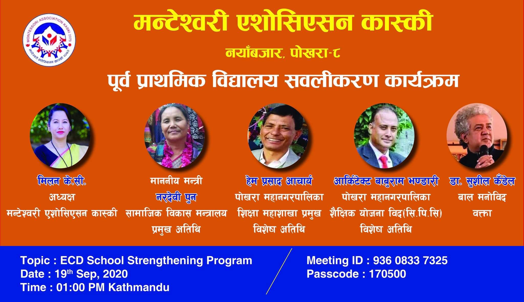 मन्टेश्वरी एशोसिएसन कास्कीले शनिबार आयोजना गरेको पूर्व प्राथमिक विद्यालय सबलीकरण भर्चुअल कार्यक्रममा बोल्दै मन्त्री पुनले विद्यालय, अभिभावक, सरोकारवाला सम्पूर्ण निकायले उचित छलफल गरी कोभिड–१९ को सुरक्षा नीति अवलम्बन गर्दै विद्यालय खोल्नेबारे निष्कर्ष निकाल्नुपर्ने बताउनुभयो । त्यसैगरी, पोखरा महानगरपालिकाका शैक्षिक योजनाविद् बाबुराम भण्डारीले पूर्व प्राथमिक तहका लागि नीति निर्माण गर्न महानगरले बालबालिकासँग सम्बन्धित निकायहरूसँग सहयोग एवं समन्वय गरिने बताउनुभयो ।