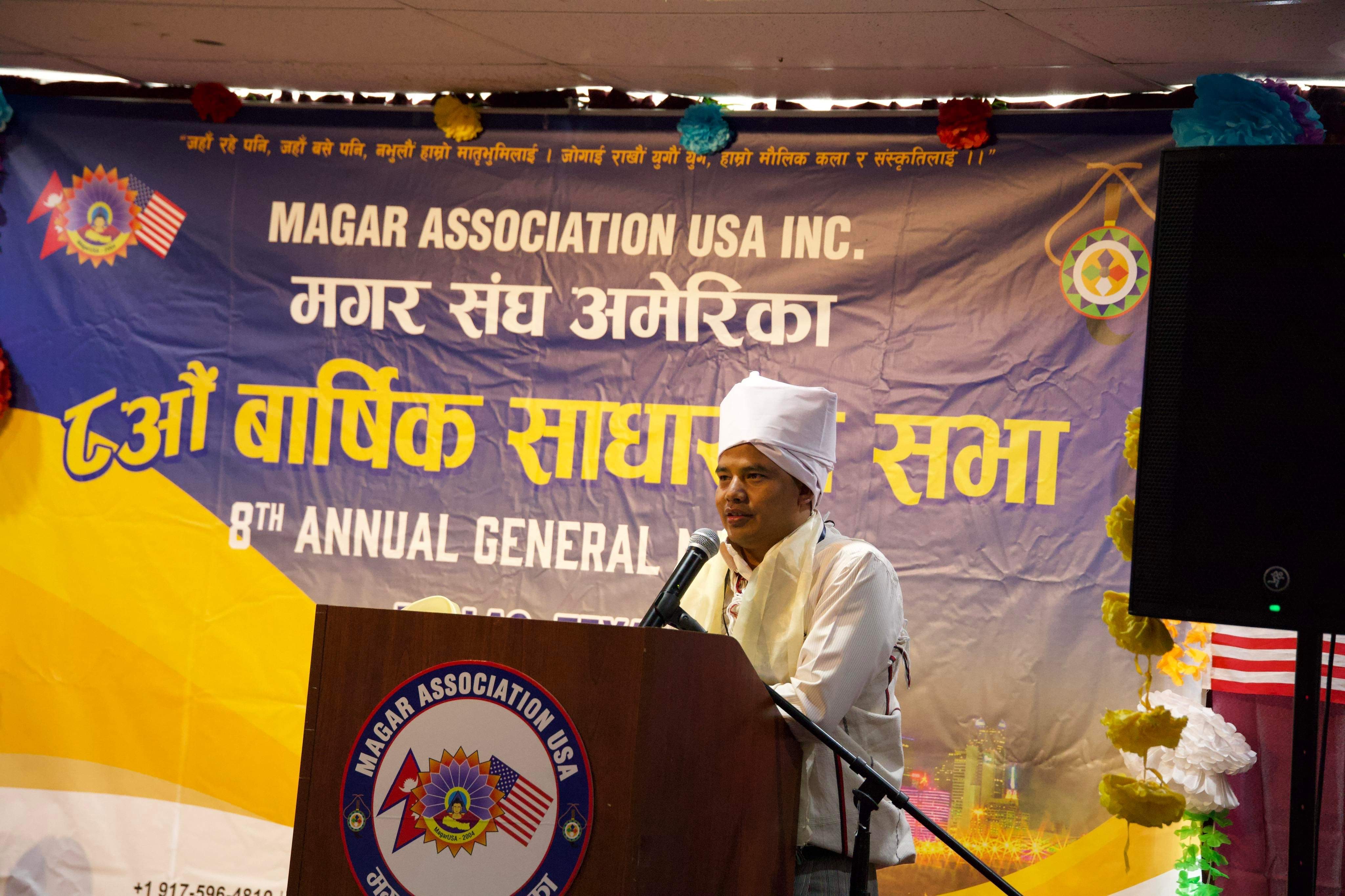 ‘अमेरिकाको मुलप्रबाहमा मगरहरुको उपस्थिति सहभागिताउदाउँदो मगर पुस्ता माझ मगर भाषा, संस्कार संस्कृति हस्तान्तरणआजको आवश्यकता’ भन्ने मुल नारा सहित मगर संघ अमेरिका केन्द्रीय समितिको आठौं बार्षिक साधारणसभा टेक्सास राज्यको डलास शहरमा आईतबार अगस्ट मा सम्पन्न भएको